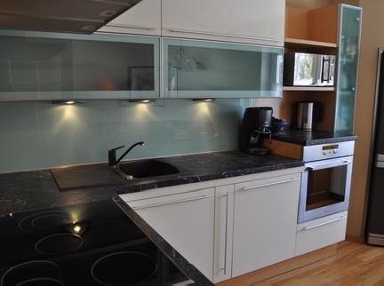 Die neue, sehr geräumige Küche ist vollständig eingerichtet und gut ausgestattet:
