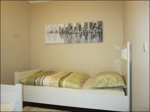 Das zweite, kleinere Schlafzimmer verfügt über 2 getrennte Betten, einen Schrank und ein Nachtkästchen. |